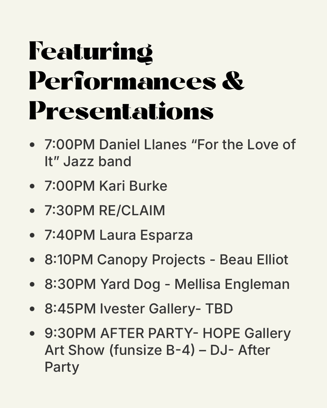 Join us for entertainment: jazz, samba dancing, opera, free drinks from our sponsors, and information about A3. Learn about the projects A3 wants to support and information about what a local arts agency is and does and what they can expect in the future.